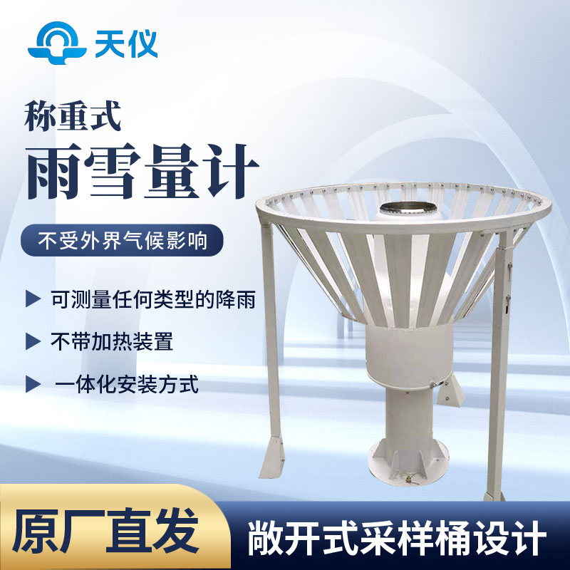 雨雪量计采用高精度压力传感元件,可长期稳定高精度的对固态、液态以及固液混合态降雨雪量进行自动化测量并存储相关测量数据。由于采用了标准件设计、模块化的零部件及铸造件保证了雨雪量计的高可靠性以及低维护性,使其适合在环境严苛的地域进行全天候的降雨、降雪观测。由于其采用了称重原理以及敞开式采样桶设计,因此不管是较小的雨强还是较大的雨强都可以精确测量,涵盖的雨强范围可达6~1800mm/h,弥补了传统翻斗式或者数字式雨量计测量雨强范围较窄的不足。