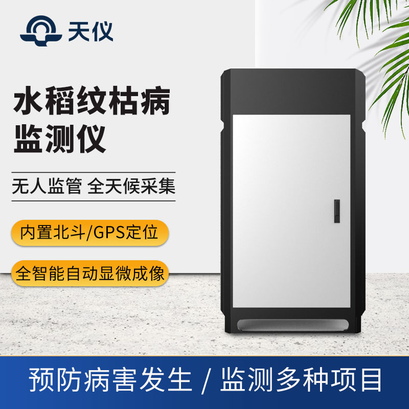 纹枯病为害水稻叶片和叶鞘,对水稻生产危害严重。纹枯病监测仪是集气象监测和智能孢子捕捉显微成像于一体的新型纹枯病监测装备。系统通过采集水稻种植区的生长环境情况,并根据系统内建模型进行水稻纹枯病的发病情况的预测。同时内置的纹枯病孢子捕捉装置通过采集纹枯病发病的孢子存量及其扩散动态,为纹枯病的发生提供了无人化、可视化的验证手段。该设备主要由气象信息采集装置、孢子捕捉装置、孢子承载装置、图像采集装置、网络传输模块、电源与防雷系统组成。实现远程自动捕捉纹枯病孢子信息,载玻带自动转动,自动采集、自动显微成像拍照,图片数据自动上传,自动运行等功能。同时将环境气象信息和纹枯病病害图片实时上传到指定网络平台,形成气象环境信息与孢子发生状况动态对比数据库,为研究纹枯病发生趋势和气象之间的关系提供大量的数据支撑。为现代农业提供服务,满足病情预测预报及标本采集的需要,及时防治病害发生。