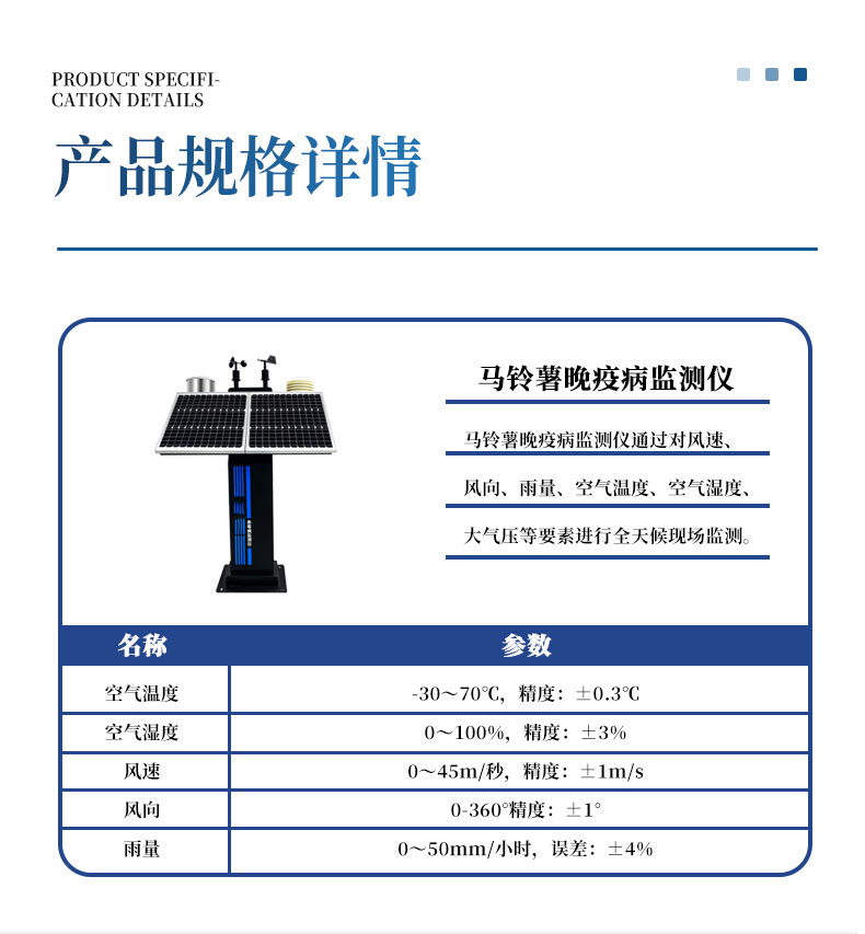 三、马铃薯晚疫病监测仪技术参数
