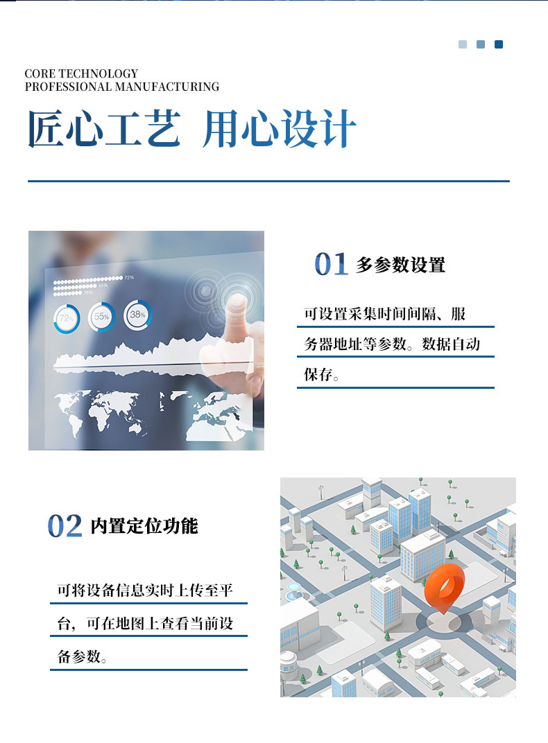 1、多参数设置,可设置采集时间间隔、服务器地址等参数。数据自动保存。