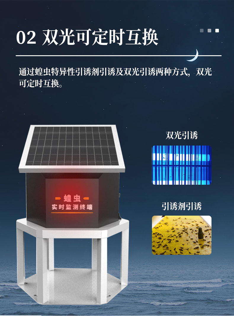 3.通过蝗虫特异性引诱剂引诱及双光引诱两种方式,双光可定时互换。