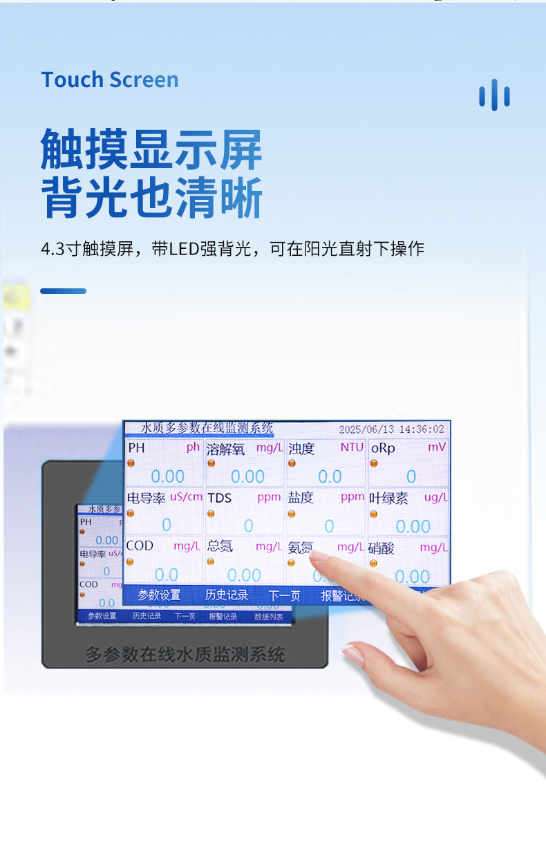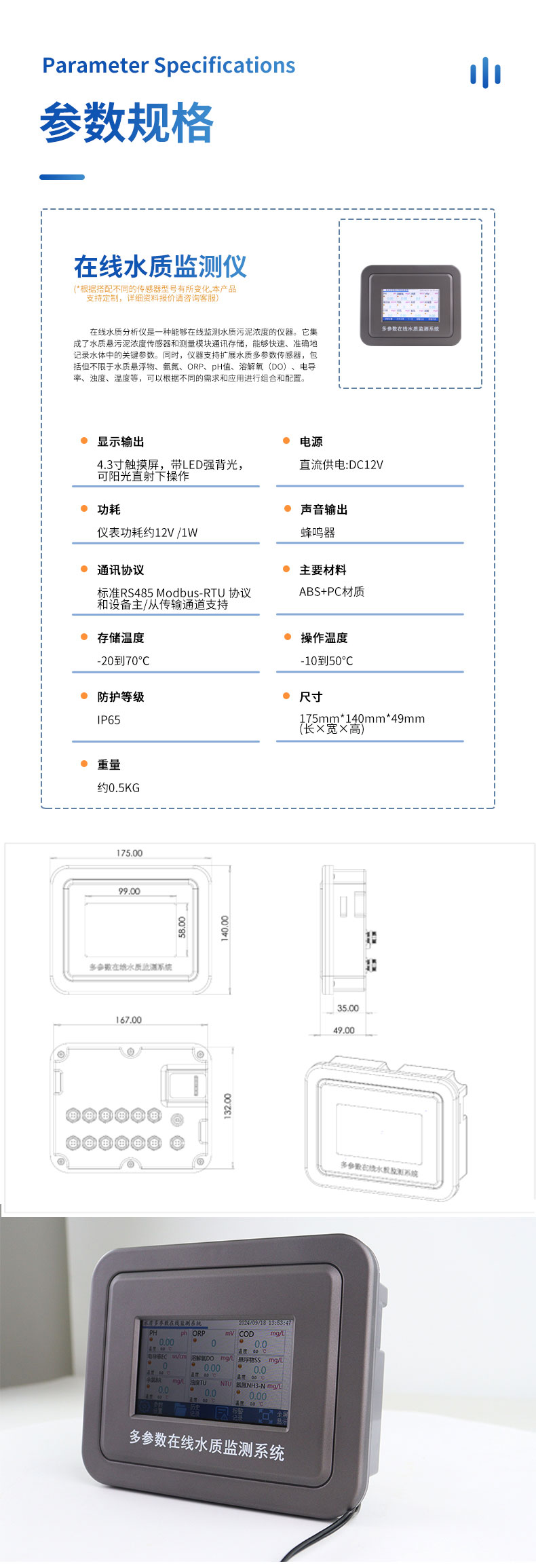 ZS10在线悬浮物分析仪是一种能够在线监测水质悬浮物的仪器。它集成了水质悬浮物传感器和测量模块通讯存储,能够快速、准确地记录水体中的关键参数。同时,仪器支持扩展水质多参数传感器,包括但不限于水质悬浮物、氨氮、ORP、pH值、溶解氧(DO)、电导率、浊度、温度等,可以根据不同的需求和应用进行组合和配置,记录并存储历史监测数据、报警历史记录,支持历史数据导出.xlsx。RS485接口支持MODBUS-RTU通讯协议方便用户自由通讯与PLC、DCS,组态软件,DTU等设备连接传输数据。