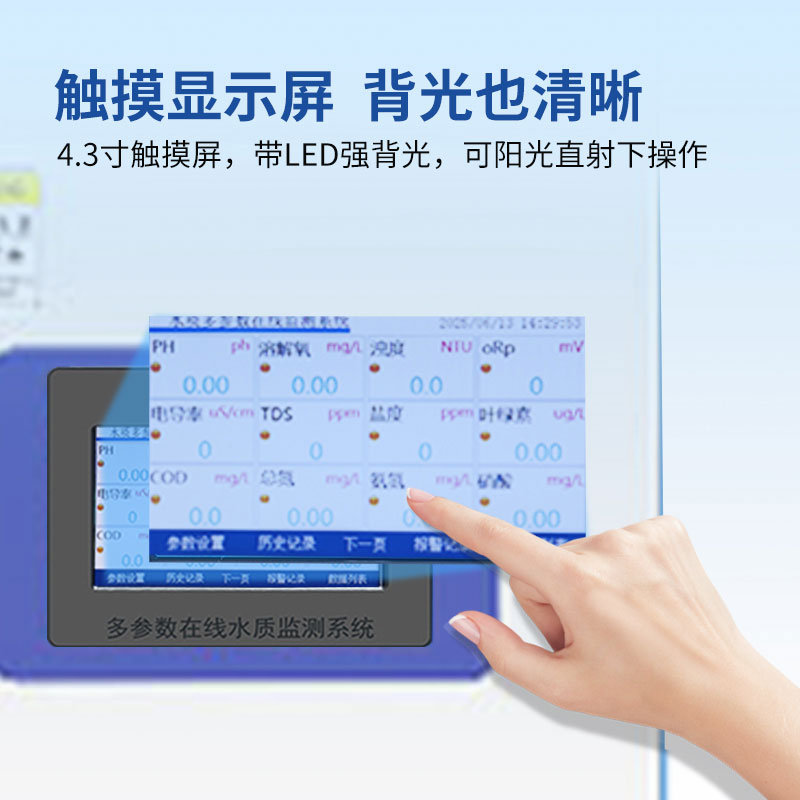 WS10在线污水在线监测设备是一种能够在线监测水温、COD、氨氮、ph、余氯、溶解氧、电导率、浊度、orp的仪器。它集成了对应的传感器和测量模块通讯存储,能够快速、准确地记录水体中的关键参数。同时,仪器支持扩展水质多参数传感器,包括但不限于pH值、溶解氧(DO)、电导率、浊度、温度、氨氮等,可以根据不同的需求和应用进行组合和配置,记录并存储历史监测数据、报警历史记录,支持历史数据导出.xlsx。RS485接口支持MODBUS-RTU通讯协议方便用户自由通讯与PLC、DCS,组态软件,DTU等设备连接传输数据。